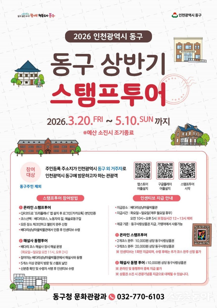 < 신설 제물포구 전체 관광자원화 > ㅡ 인천역 개항장 페스타 ㅡ 신포국제시장 닭강정 ㅡ 애관극장, 답동성당, 애관극장 ㅡ 임충휴갤러리 ㅡ 배다리헌책방예술문화거리 스탬프투어 (상품권) ㅡ 동인천역명소
